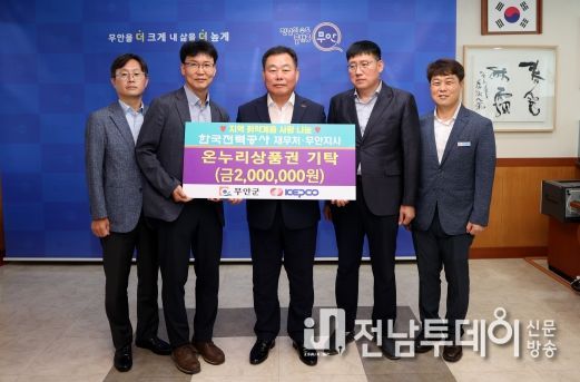 전남투데이 안철우 기자 | 전남 무안군은 한국전력공사 재무처와 무안지사에서 취약계층 지원을 위한 온누리 상품권 200만원을 기탁했다고 12일 밝혔다.