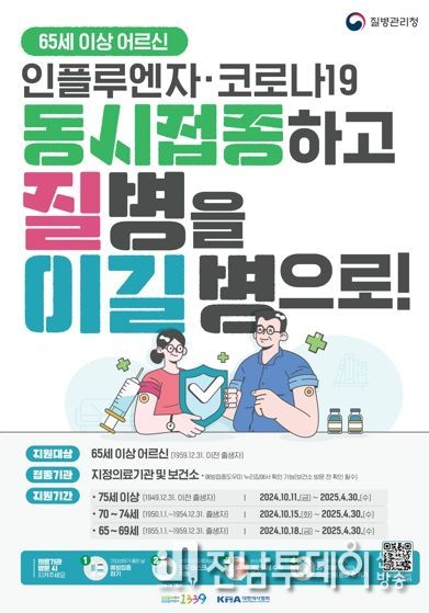 이상심 전남도 보건복지국장은 “매년 겨울철 유행하는 독감을 예방하기 위해, 면역력이 약한 고령층이나 어린이는 반드시 독감 접종을 받아야 한다”며 “독감·코로나19 동시접종 안전성이 확인됐으므로 65세 이상 어르신과 면역 저하자 등은 10월 중순부터 코로나19와 동시 접종에 적극 참여해달라”고 당부했다.
