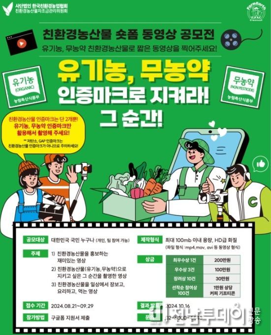 유덕규 전남도 친환경농업과장은 “(사)한국친환경농업협회, 친환경농산물자조금관리위원회와 함께 생산자 단체가 직접 소비자와 소통하는 다양한 홍보활동을 펼치고, 정책 발굴에도 협력하겠다”며 “이번 친환경 농산물 숏폼 동영상 공모전을 통해 소비자가 건강한 친환경 농산물 홍보 및 소비 확대에 기여하길 바란다”고 말했다.