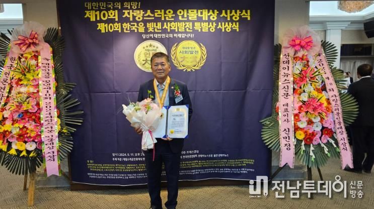 전남투데이 김완규 기자 | 전라남도의회 신의준 의원(완도2, 더불어민주당)이 지난 11일 한국프레스센터에서 열린 '2024 한국을 빛낸 사회발전대상' 시상식에서 ‘지방의회발전 부분 특별상’을 수상하는 영예를 안았다고 19일 밝혔다.