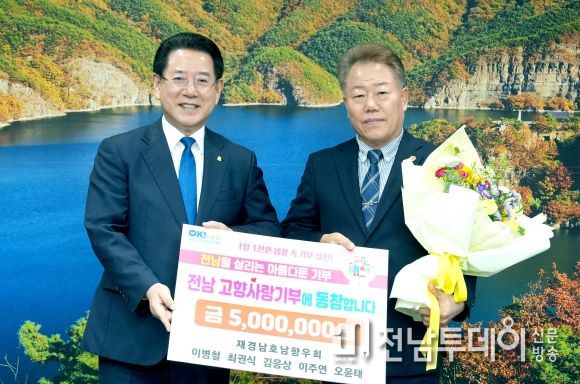 기탁식에는 김영록 전남도지사, 재경남호남향우회 이병철 회장과 최권식 김해향우회장, 김응상 창원향우회장 등 5명이 참석했다.