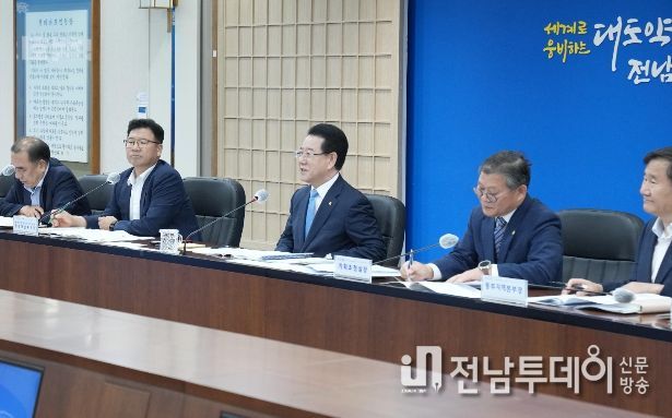 전남투데이 김완규 기자 | 김영록 전라남도지사는 24일 단시간에 많이 오는 비를 효과적으로 대처할 폭우대책, 지역 소득 역외유출 감소를 통한 지역경제 선순환체계, 생활인구 확대와 복수주소제 도입 등 현안에 행정력을 집중할 것을 주문했다.