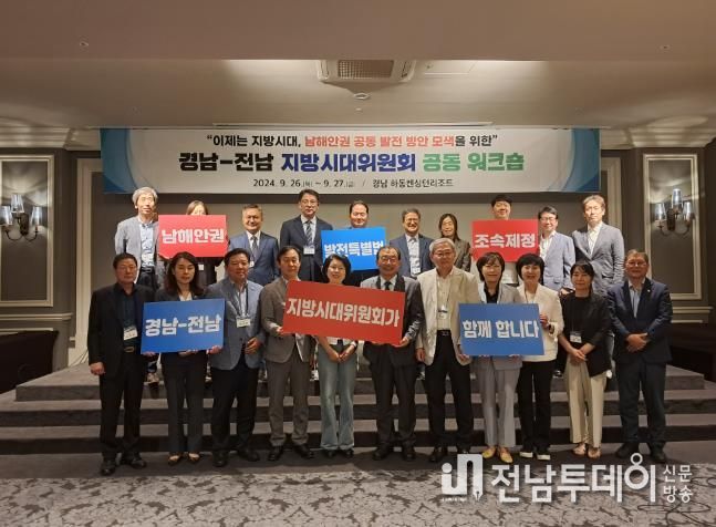 전남투데이 김완규 기자 | 전라남도는 경상남도와 함께 27일까지 이틀간 경남 하동, 전남 순천에서 전남-경남 지방시대위원회 간 공동워크숍을 개최하고, 남해안권 발전특별법 조기 제정 등을 공동 건의하기로 합의했다고 밝혔다.