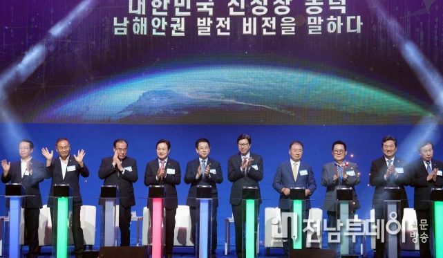 대한민국 신성장 동력, 남해안권 발전 비전을 말한다’를 주제로 진행된 이날 행사는 전남, 경남, 부산 시·도지사가 남해안권 발전을 위한 비전과 지역 현안들에 대해 논의하는 정책 토크쇼에 이어 전문가 주제발표 및 패널토론 순으로 진행됐다.