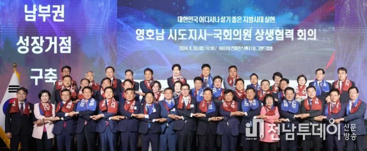 전남투데이 김완규 기자 | 전라남도는 30일 영호남 시도지사 협력회의가 서울 한국경제인협회(FKI타워 컨퍼런스센터)에서 지역 국회의원 초청 상생협력 회의를 개최하고, 영호남 균형발전을 위한 협력을 다짐했다고 밝혔다.