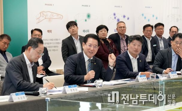 전남투데이 김완규 기자 | 전라남도는 2일 솔라시도 CC 홍보관에서 솔라시도 기업도시 활성화 비전 추진상황 보고회를 열어 서남권 거점 복합도시 육성 전략을 모색했다.