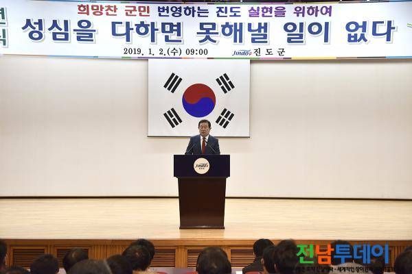 시무식에서 이동진 군수는 “희망찬 군민, 번영하는 진도를 위해 성심을 다하면 못해내는 일이 없다”고 전제한 뒤 “진도 번영이라는 돛을 높이 올리고 도전과 전진의 행보로 희망찬 한해를 시작하자”고 강조했다.