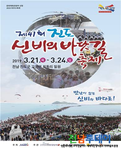 올해로 41회째를 맞는 ‘진도 신비의 바닷길 축제’가 오는 21일부터 24일까지 진도군 고군면 회동리 일원에서 개최된다. 지난 1975년 주한 프랑스 대사에 의해 '한국판 모세의 기적'이 세계에 알려지면서 마을 주민끼리 치르던 연례행사는 1978년부터 성대한 축제로 거듭났다.
