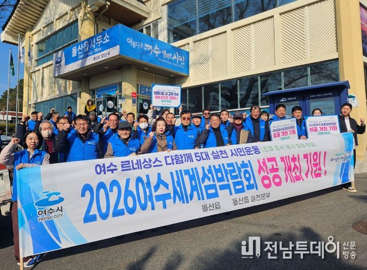 전남투데이 조평훈 기자 | 여수시 돌산읍은 지난 1월 29일 돌산읍사무소 인근 도로변에서 ‘여수 르네상스 다함께 5대 실천 시민운동’ 캠페인을 전개하며 2026여수세계섬박람회 성공개최를 위한 홍보활동을 펼쳤다고 밝혔다.