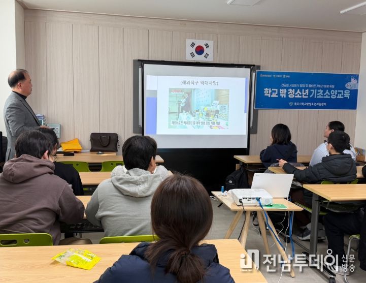 전남투데이 김용희 기자 | 목포시 학교밖청소년지원센터는 지난 3일 전남마약퇴치운동본부, 목포시청소년노동인권센터와 연계해 관내 학교 밖 청소년 14명에게 마약예방교육과 청소년 근로권익교육을 실시했다.