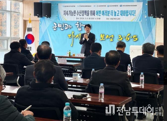 전남투데이 조평훈 기자 | 보성군은 지난 6일 봇재홀에서 해양수산부와 전국어민회총연맹 주관으로 ‘2026 전국 순회 수산정책 소통간담회’를 개최했다고 밝혔다.
