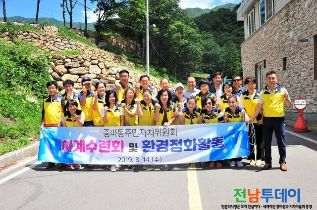 【전남투데이 구정준 기자】광양시 중마동주민자치위원회(위원장 한기택)는 지난 14일(수) 20여 명의 위원과 함께 백운산 봉강계곡에서 8월 정례회의를 개최하고 하계수련회 및 환경정화활동을 펼쳤다고 밝혔다.