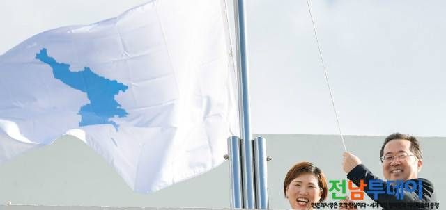 【전남투데이 구정준 기자】순천시는 광복 74주년, 대한민국임시정부 수립 100주년, 시 승격 70주년을 맞아 남북 평화‧화해 분위기 확산과 한반도 평화통일 기틀 마련을 위해 전남 최초로 시청사에 한반도기를 게양했다.