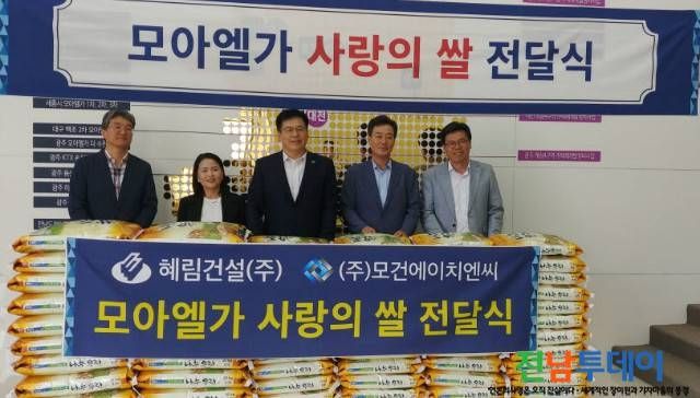 【전남투데이 구정준 기자】㈜혜림건설(대표 최석준), ㈜모건에이치엔씨(대표 박정환)은 지난 30일 ‘순천 모아엘가 리버파크’ 모델하우스 개관을 기념해 기부 받은 쌀 150포(5백만원 상당)를 순천시 어려운 이웃에게 기탁했다.