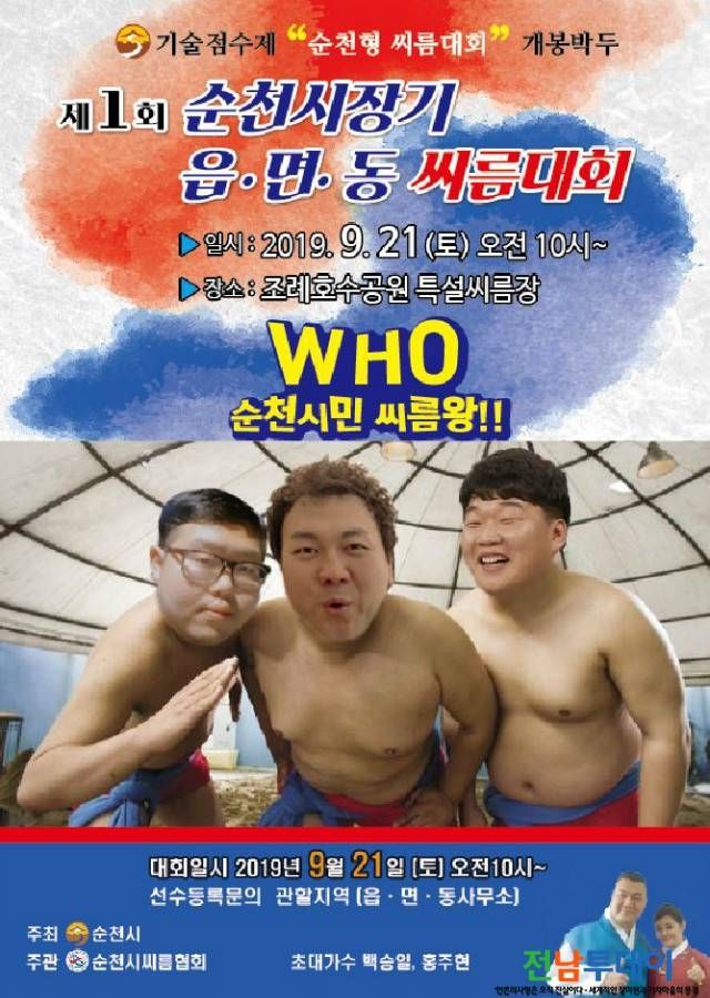 【전남투데이 구정준 기자】순천시에서는 오는 21일 토요일 오전 10시부터 조례호수공원에 마련된 특설씨름장에서 ‘제1회 순천시장기 읍면동 기술점수제 씨름대회’를 개최한다고 밝혔다.
