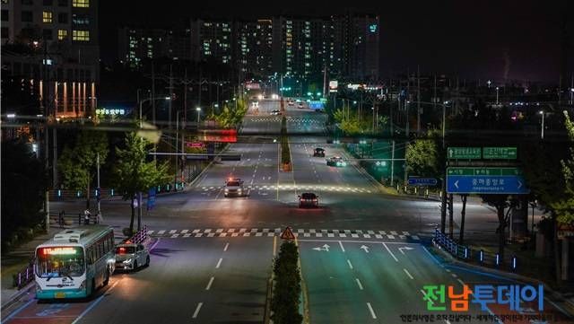 【전남투데이 구정준 기자】광양시는 중동 e편한세상 앞 시청 사거리가 다양한 빛으로 밝아져 시민들에게 큰 호응을 얻고 있다고 밝혔다.