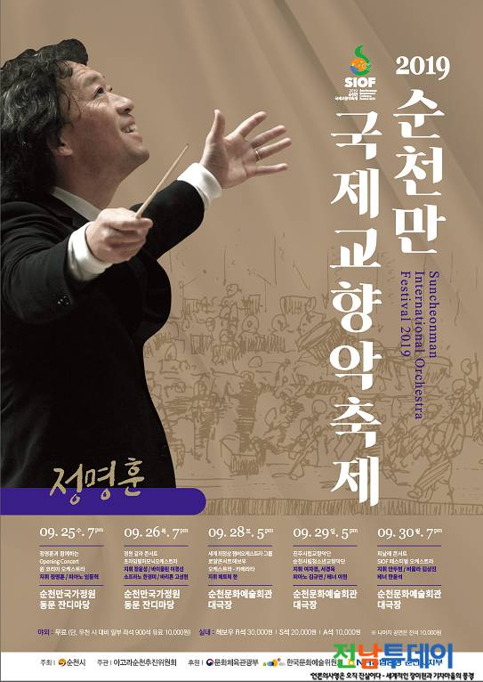 【전남투데이 구정준 기자】‘2019 순천만국제교향악 축제’가 9월 25일부터 30일까지 순천만국가정원과 순천문화예술회관에서 개최된다.