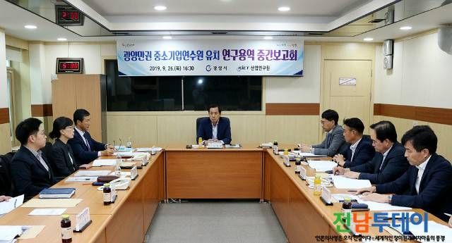【전남투데이 구정준 기자】광양시는 9월 26일(목) 시청 상황실에서 ‘광양만권 중소기업연수원(이하 연수원) 유치 타당성 확보방안 연구용역’ 중간보고회를 개최했다고 밝혔다.