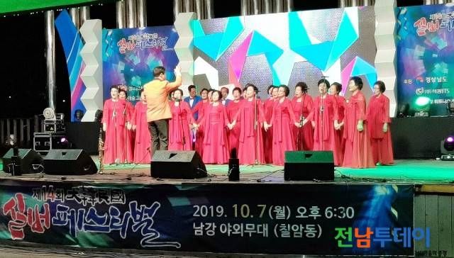【전남투데이 구정준 기자】지난 10월 7일 진주시 남강 야외무대에서 열린 제14회 대한민국 실버페스티벌에서 순천시 노인복종합복지관 대표로 출전한 ‘용당실버합창단’이 동상을 수상했다.