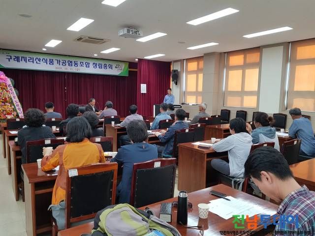 구례군(군수 김순호))은 최근 농업기술센터 회의실에서 농산물가공 창업을 희망하는 농업인 27명이 참석한 가운데 구례지리산식품가공협동조합(대표 박영규) 창립총회를 개최했다고 15일 밝혔다.