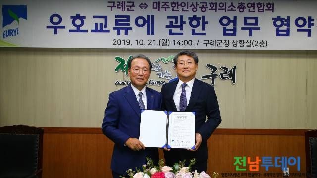 구례군(군수 김순호)과 미주한인상공회의소 총연합회(회장 김선엽)는 21일 구례군청에서 경제교류에 관한 업무 협약을 체결했다.