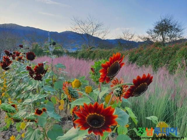 구례군과 구례야생화사랑모임 회원들이 만든 섬진강 샤방샤방 꽃길의 「김보경 꽃동산」이 코스모스와 노랑 코스모스, 핑크뮬리, 해바라기가 오색만발하여 주목받고 있다.