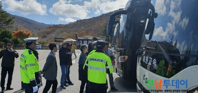 ○ 지난 22일 오전, 지리산 성삼재 주차장에서 전남지방경찰청, 경찰서 교통관리계, 국립공원남부관리사무소, 구례군청, 한국교통안전공단, 전세버스조합 등 15여명이 참석한 가운데 전세버스 차량 및 운전자의 안전점검을 통해 자발적인 안전점검 유도 및 교통안전에 대한 지속적 관심을 유도하기 위하여 현장에서 유관기관 합동으로 행락철 전세버스 안전점검을 실시하였다.