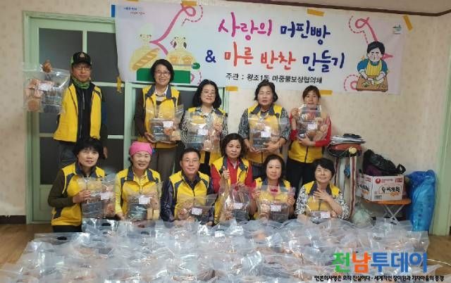 【전남투데이 구정준 기자】왕조1동(동장 장순모) 마중물보장협의체에서는 지난 10월 17일과 18일 이틀간 관내 취약계층인 독거노인, 한부모, 조손가정, 장애인 등 93세대에 머핀빵과 마른반찬을 직접 만들어 취약계층의 안부를 살폈다.