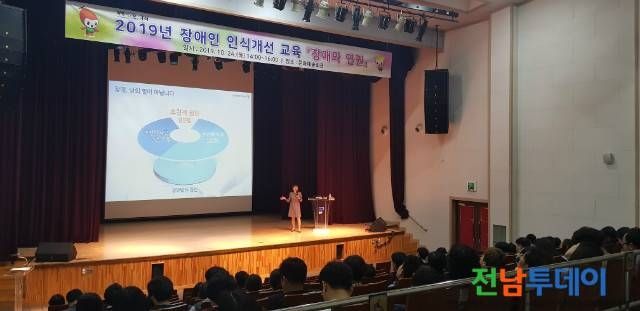 이날 강사로 초청된 유달장애인자립생활지원센터 서미화 소장은 장애인의 인권, 차별금지 등 직장 내에서 필요한 장애인 인식개선에 관한 내용을 중심으로 강의를 했다.