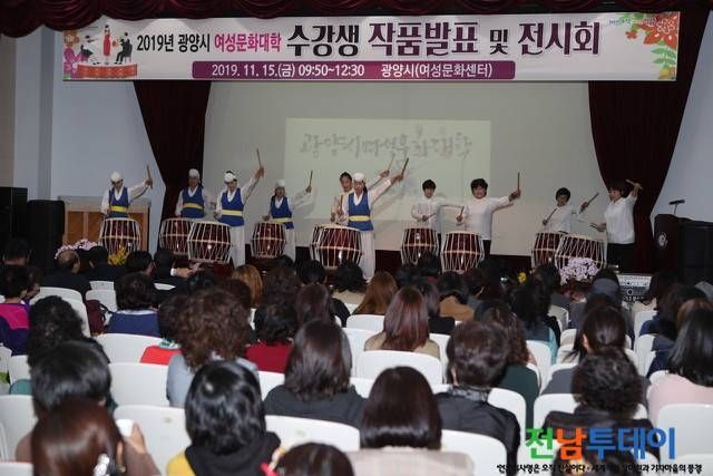 【전남투데이 구정준 기자】광양시는 지난 15일(금) 여성문화센터에서 2019년 '여성문화대학 작품발표 및 전시회'를 시민 500여 명이 참여한 가운데 성황리에 마쳤다고 밝혔다.