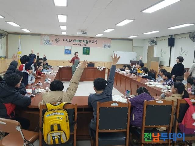 특히 봉산면 주민자치회 회원들이 직접 환경개선교육을 진행하고 다과를 준비해 자라나는 아이들에게 환경보존의 의미를 되새기는 뜻깊은 자리가 됐다.