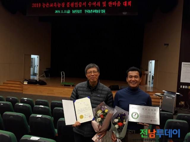 아울러, 농촌교육농장 품질인증서 수여식에는 구례군의 번덕뜰농원(대표 한성환)을 포함한 총 79명의 농장이 인증을 받았다.