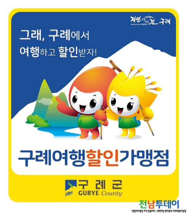 구례군(군수 김순호)은 ‘그래, 구례에서 여행하고 할인받자(그래, 구례 여행 할인)!’ 이라는 슬로건으로 「구례여행 할인제」를 11월 29일부터 시행한다고 밝혔다.