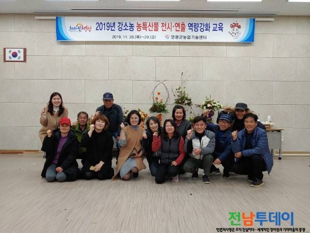 영광군(군수 김준성)은 최근 농산물의 시각적 부가가치에 대한 관심이 날로 높아지는 가운데 지난 28일부터 29일까지 2회 과정으로 「농특산물 전시·연출 역량강화교육」을 농기계교육관에서 실시했다.