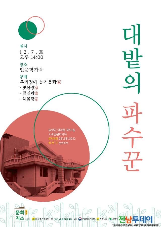 자세한 사항은 문화지소 블로그(http://blog.naver.com/dyplace) 또는 인문학가옥(061-381-8242)으로 문의하면 된다.