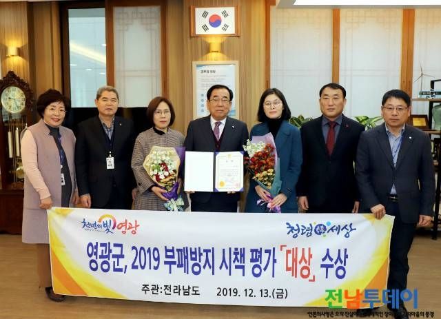 부패방지 시책 평가는 반부패 종합대책 추진 등 7개 항목 19개 지표에 대한 실적을 점수화한 것으로 영광군은‘대상’기관표창과 500만원의 시상금까지 거머쥐었다.