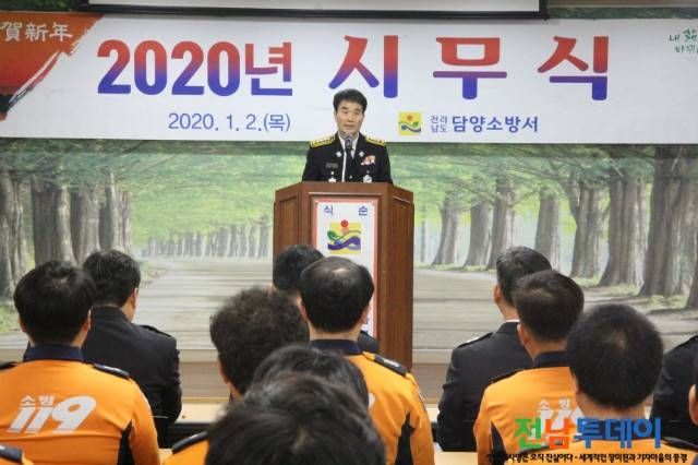 전남 담양소방서(서장 최현경)는 지난 2일 본서 대회의실에서 소방공무원과 의용소방대연합회장 등 60여명이 참석한 가운데 경자년 새해 시무식 행사를 가졌다고 밝혔다.