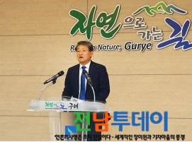 김순호 구례군수가 3일 군청 상황실에서 기자회견을 가졌다. 직접 PPT로 2019년 성과와 2020년 계획을 브리핑하는 파격적인 기자회견을 진행하며 소통행정에 대한 의지를 확고히 보였다.