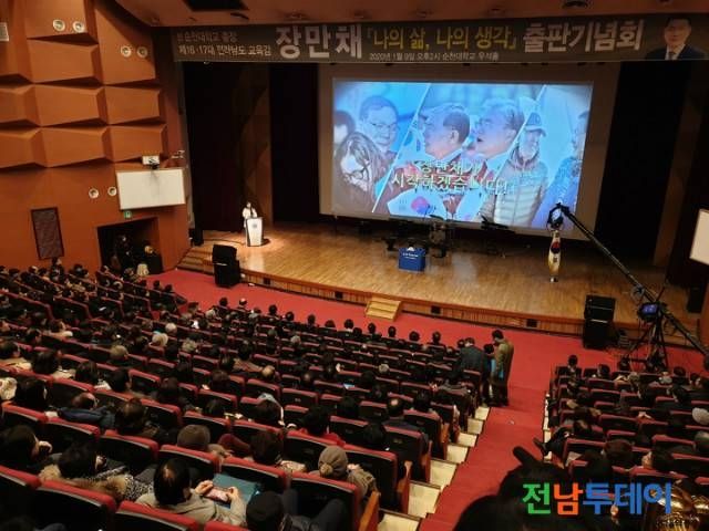 더불어민주당 장만채 국회의원(순천) 예비후보의 “나의 삶, 나의 생각”출판기념회가 9일 순천대 70주년 기념관에서 1천여명의 지지자와 시민들이 모인 가운데 성황리에 진행됐다.