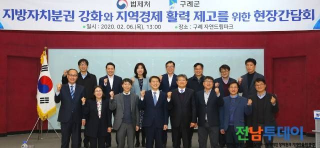 전남 구례군(군수 김순호)이 지난 6일 오후 2시 구례자연드림파크 국제회의실에서 열린 「2020년 2월 법제처 현장간담회」에서 김형연 법제처장에게 불합리한 규제를 개선해달라고 공식 건의했다.