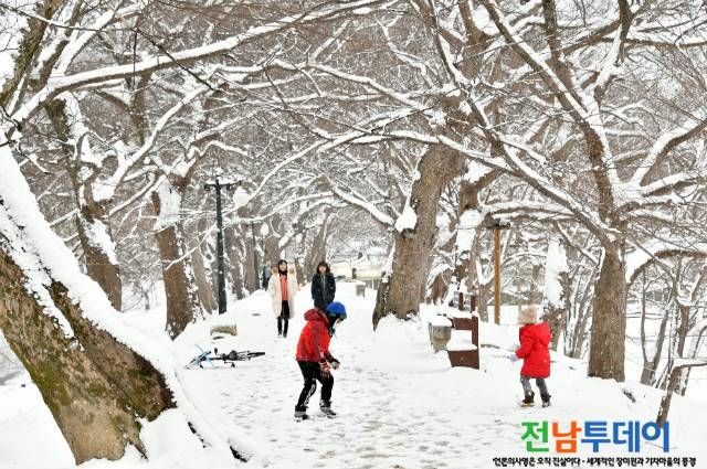 함박눈이 내린 17일 오전 담양 메타세쿼이아 가로수길과 관방제림 등 담양 대표관광지에 수북이 쌓인 눈으로 아름다운 설경이 연출됐다.