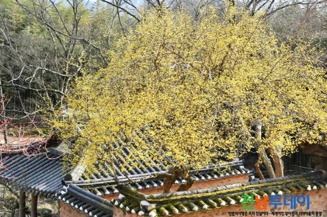 한국의 민간 전통정원 중 으뜸이라는 평가를 받는 담양 소쇄원에 산수유가 만발해 상춘객의 발길을 사로잡고 있다.