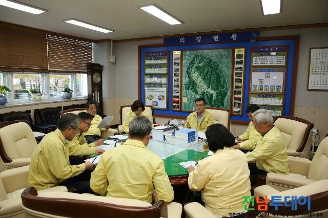 구례군의회가 6일 긴급간담회를 가지고 있다">