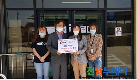 한국석유공사 곡성지사(지사장 정이교)는 12일 곡성군 옥과면에 위치한 새암복지재단 심청노인복지센터를 방문해 ‘사랑의 반찬’ 후원금 200만원을 전달하였다.