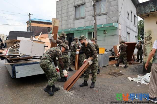 10일에는 1179부대에서 292명, 전남도청에서 71명이 참여하는 등 2개 부대, 7개 단체에서 351명이 봉사에 참여했으며 11일에는 전남도청에서 210명, 1179부대와 6753부대, 예비군중대에서 226명의 장병과 자원봉사단체협의회 30명이 참여하며 복구 작업에 힘을 쏟았다.
