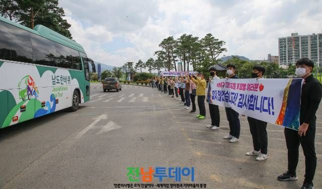 차량에 탑승한 장병들을 격려하기 위해 구례군청 직원들이 거리에 나와 격려 현수막을 펼치고 열렬히 환송했다. 사회적 거리두기 2단계로 인해 최소한의 인원만 참석했다.