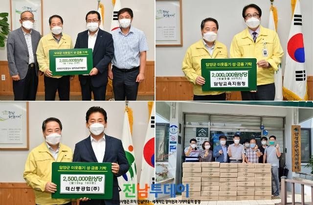 담양군(군수 최형식)은 단체와 기업 등에서 8월부터 이어진 재해와 코로나19 극복을 위해 써달라며 각종 물품을 기탁했다고 밝혔다.