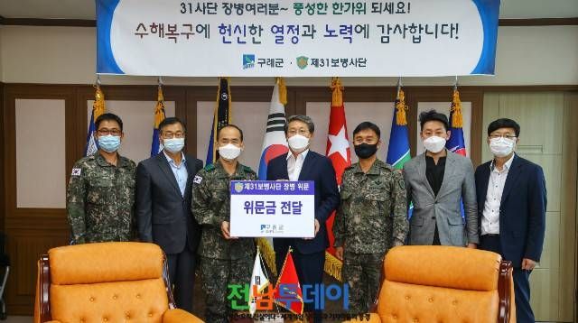 전남 구례군(군수 김순호)은 25일 육군제31보병사단, 93연대, 95연대를 방문해 수해복구 지원에 대한 감사의 마음을 전했다고 밝혔다. 답례 방문에는 김순호 군수를 비롯한 구례군 관계자들이 참석했다.