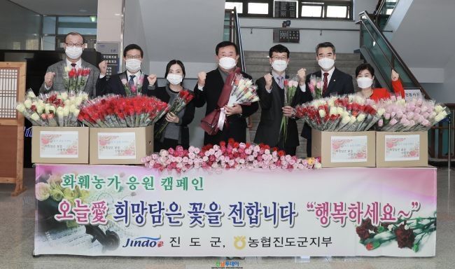 [전남투데이 서지성기자]농협진도군지부는 지난 23일(화) 코로나19로 어려움을 겪고 있는 화훼농가를 돕기 위해 장미꽃 1,000송이를 구매해 ‘사랑의 꽃 나눔 행사’를 개최했다.