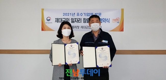 [전남투데이 윤진성 기자]국가보훈처 인천보훈지청(지청장 박현숙) 제대군인지원센터는 2021. 6. 15(화)에 인천광역시 남동구 소재 기업인 성원제이에스(주)와 제대군인 일자리 창출을 위한 업무 협약식을 가졌다.